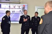 Завідувач науково-дослідної лабораторії з проблем протидії злочинності Костянтин Бугайчук та професор кафедри адміністративної діяльності поліції Ольга Безпалова під час роботи Всеукраїнського науково-практичного семінару «Забезпечення правопорядку на території проведення операції об’єднаних сил» відвідали ГУНП в Донецькій області. Учасникам семінару було презентовано інноваційну систему безпеки Донецької області – Єдиний аналітичний сервісний центр (UASC) та мобільний додаток «Поліція 102». З роботою Єдиного аналітичного сервісного центру познайомив один із розробників, а нині начальник Управління кримінального аналізу Національної поліції України Денис Пефтієв.