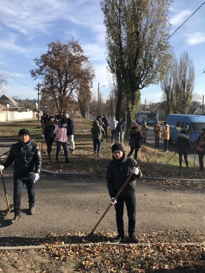 Працівники та курсанти Харківського національного університету внутрішніх справ разом із працівниками Адміністрації Слобідського району Харківської міської ради та СКП «Харківзеленбуд» прибрали зелену зону уздовж проїжджої частини проспекту Героїв Сталінграду від опалого листя.