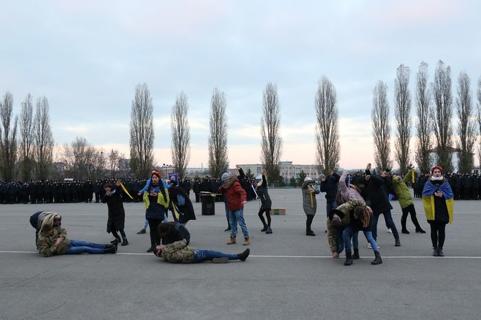 Під час заходів з нагоди Дня Гідності та Свободи, які відбулися на великому плацу університету, до присутніх звернувся ректор університету генерал поліції третього рангу Валерій Сокуренко, який привітав усіх з урочистою подією. Присутні вшанували хвилиною мовчання пам'ять усіх героїв, які ціною власного життя у різні роки виборювали свободу та незалежність. Молодь також із захопленням спостерігала за стройовим вишколом майбутніх правоохоронців, та переконалась, що в університеті не тільки опановують спеціальні науки, але й активно займаються спортом, виступають у колективах художньої самодіяльності, знають та цінують історію своєї країни та українського народу. Кожний факультет навчального закладу підготував театралізовану постановку, що відображала складний і непростий шлях, який подолав український народ, відстоюючи своє право на гідність, свободу та незалежність. Взяли участь у заході та поспілкувалися з юнаками і дівчатами, які мріють стати поліцейськими, голова Громадської ради при МВС України, голова громадської спілки «Центр запобігання та протидії корупції», радник Міністра внутрішніх справ України Володимир Мартиненко та начальник відділу запобігання корупції Управління запобігання корупції та проведення люстрації МВС України Сергій Яременко.