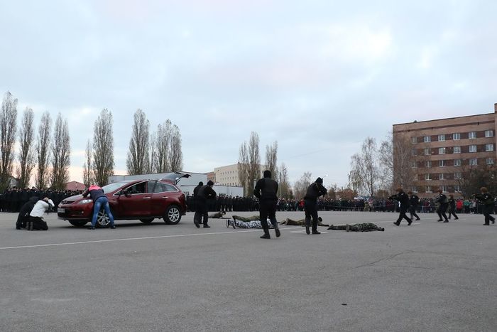 У Харківському національному університеті внутрішніх справ відбулися урочистості з нагоди відзначення Дня Гідності та Свободи. На великому плацу зібрався особовий склад університету, а також випускники старших класів загальноосвітніх шкіл Харкова, студенти коледжів, військових ліцеїв, Ліцею «Правоохоронець», вчителі та батьки майбутніх вступників. Перед початком заходів молодь мала можливість отримати необхідну та корисну інформацію щодо факультетів університету та спеціальностей, ознайомитися з інформаційно-іміджевою продукцією, стендами навчальних підрозділів вишу, отримати консультації щодо вступних випробувань, можливості навчатися на підготовчому відділенні та отримати військову спеціальність, закінчивши кафедру військової підготовки. Майбутні абітурієнти також дізналися ще про одну послугу, якою вони можуть скористатися – дистанційне навчання для підготовки до здачі ЗНО.