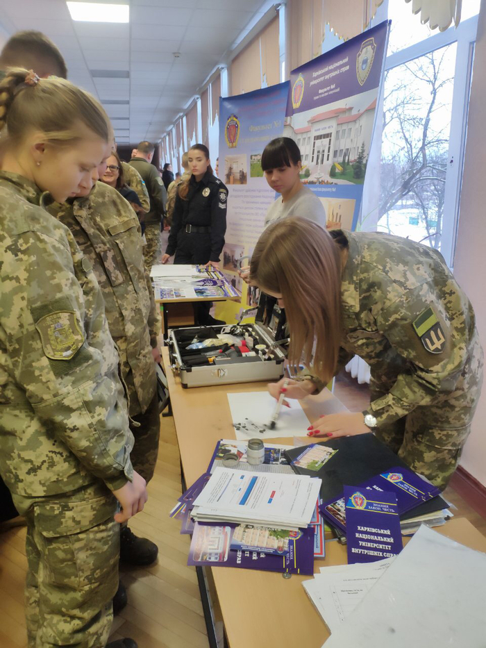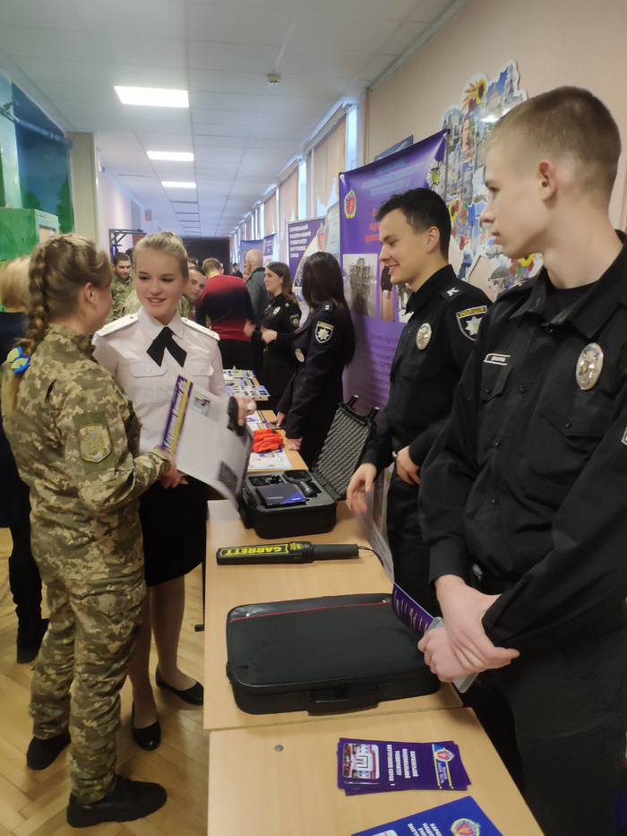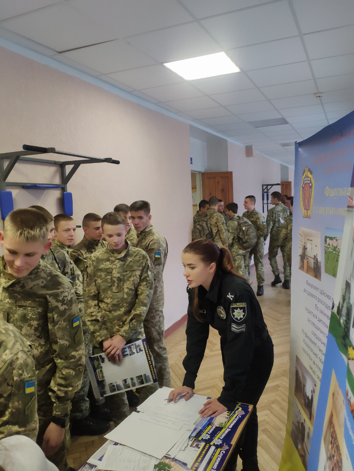 Під час зустрічі працівниками факультету кіберполіції було проведено вікторину для ліцеїстів з інформаційної безпеки. Переможців конкурсу відзначили пам’ятними подарунками. Відбулися й виступи колективів художньої самодіяльності Ліцею та університету після закінчення яких працівники вишу ознайомили юнаків і дівчат з факультетами та спеціальностями, за якими готують майбутніх поліцейських. Кожний факультет підготував власну презентацію, курсанти відповідали на численні запитання, розповідали про навчання, про переваги та особливості спеціальності, яку вони обрали, про те, як проводять дозвілля, займаються спортом та багато іншого, а також запросили ліцеїстів вступати до університету.