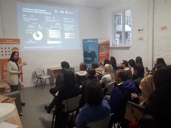 Презентація результатів дослідження відбулася на базі Центру гендерної культури, яку представила провідний науковий співробітник Інституту демографії та соціальних досліджень НАНУ ім. М.В. Птухи кандидат економічних наук Гання Герасименко.