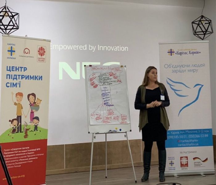 Тренінг проводили психологи «Карітас Харків» Світлана Остапцова та Вікторія Зенцова. Фахівці розповіли учасникам тренінгу про основні види булінгу, його прояви та ознаки, після чого учасники заходу виконали практичну вправу «Дерево проблем». Світлана Остапцова та Вікторія Зенцова ознайомили учасників тренінгу з міфами та фактами про булінг. Учасники тренінгу навели власні приклади, з якими вони стикалися в своїй роботі. Психологи «Карітас Харків» наголосили на ролі вчителя в учнівському колективі, в якому є прояви булінгу, розповіли про способи вираження агресії у класі та надали численні практичні вправи для профілактики недопущення булінгу.