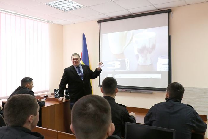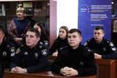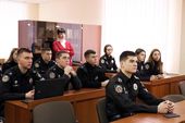 Начальник відділу міжнародних зв’язків Станіслав Осятинський та старші викладачі кафедри іноземних мов Наталія Горбач і Тетяна Кальченко ставили курсантам цікаві запитання на знання історії рідного вишу, інформували про пізнавальні факти, розширюючи світогляд майбутніх правоохоронців.