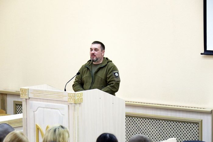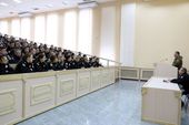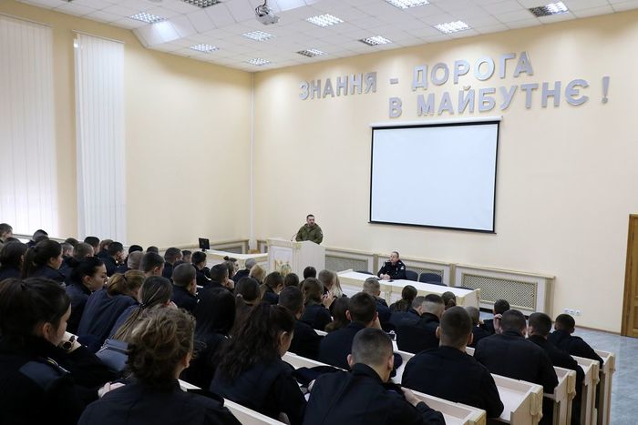 З представниками курсантсько-студентської молоді усіх факультетів вишу провів зустріч заступник командира полку патрульної служби поліції особливого призначення «Дніпро-1» ГУНП в Дніпропетровській області полковник поліції Олександр Обушенко.