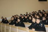 Під час зустрічі представник Департаменту кіберполіції перевірив знання курсантів з професійної термінології та розуміння ними алгоритму вчинення кібератак та шахрайських дій з використанням інформаційних технологій, а також відповів на запитання.