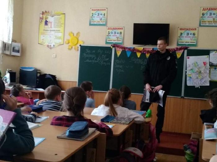 Під час зустрічей зі школярами курсант розповів про правила інформаційної безпеки під час користування всесвітньою мережею Інтернет та про небезпеку викладання у віртуальному світі особистних даних тощо.