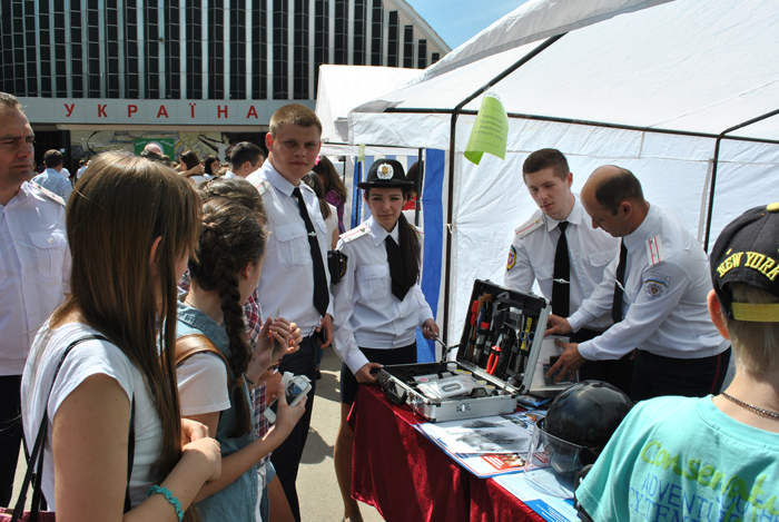 Представники університету відповідали на численні запитання – про умови навчання, факультети, спеціальності, за якими готують фахівців, розповсюджували рекламно-іміджеву продукцію – буклети, газети. Також представники університету влаштували демонстрацію спеціальних засобів захисту працівників міліції і показали, як працюють експерти-криміналісти, зокрема, виявляють відбитки пальців рук на поверхні предметів.