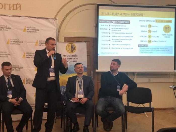 Представники територіальних управлінь Національного антикорупційного бюро, прокурор Спеціалізованої антикорупційної прокуратури під час жвавої дискусії повідомили про досягнення та межі компетенції НАБУ, результати діяльності САП. Були розглянуті проблеми інституційного становлення та організаційні засади діяльності Агентства з розшуку та менеджменту активів та Антикорупційного суду.
