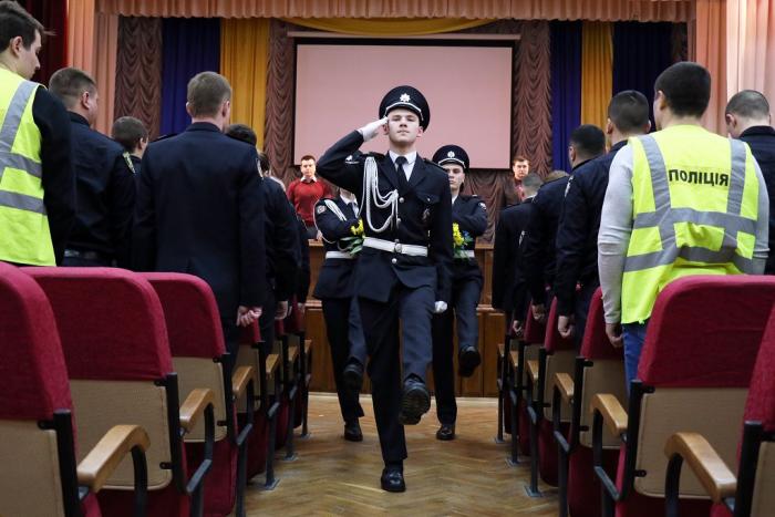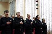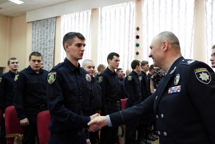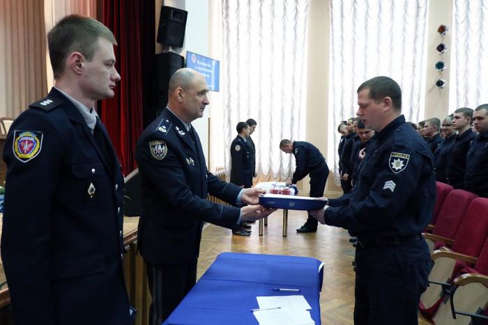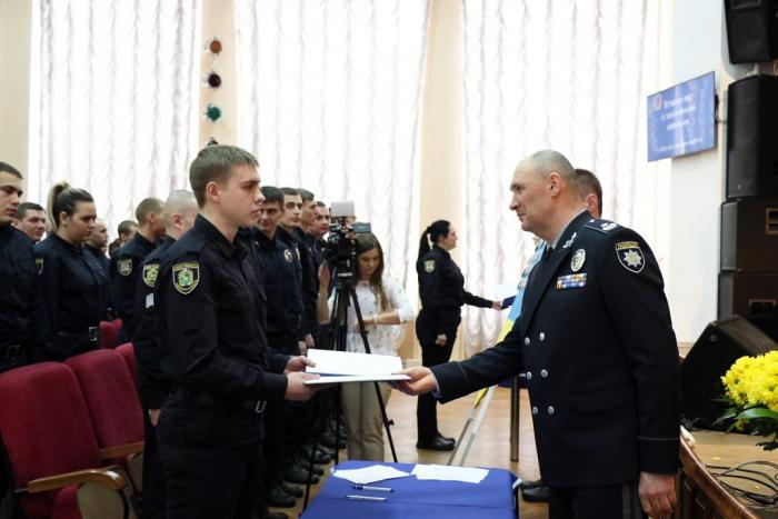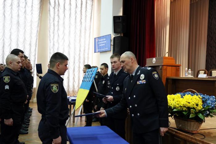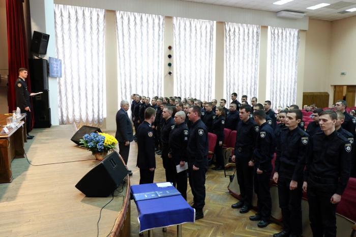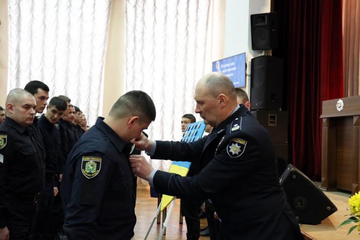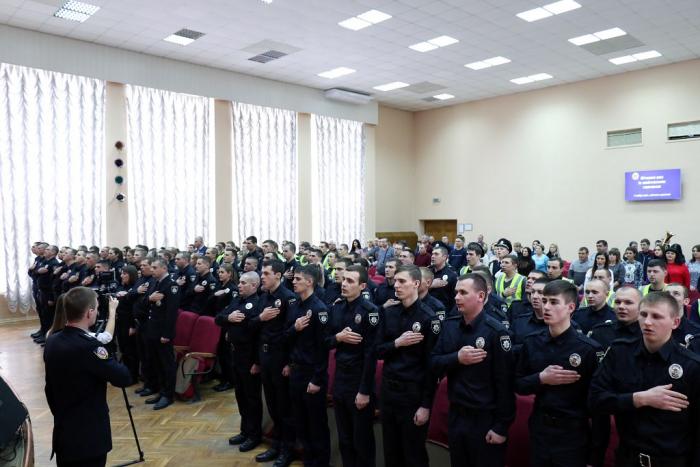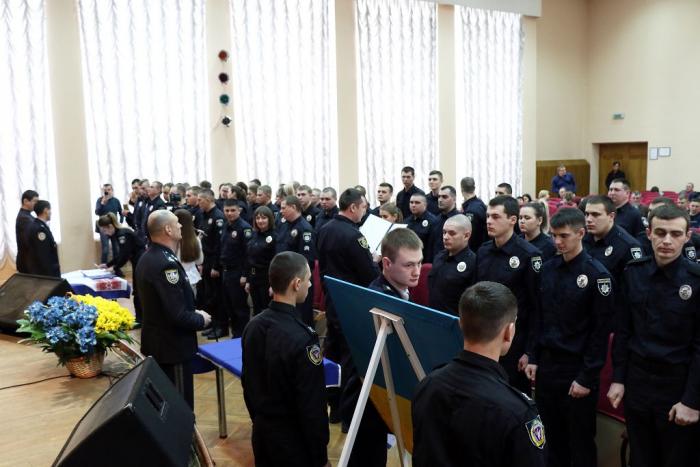 Відбулася церемонія складання Присяги. Випускники обіцяли вірно служити Українському народові, дотримуватися законів України, охороняти права та свободи громадян. Випускникам вручили поліцейські жетони.