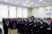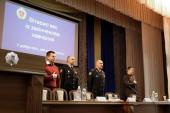Із визначною подією випускників привітав ректор університету. Валерій Васильович зазначив, що рішення стати поліцейським – це особистий вибір кожного. «Ви отримали необхідні ази знань, умінь та навичок, щоб служити в поліції, але, щоб стати справжнім фахівцем, необхідно постійно працювати над собою, підвищувати свою кваліфікацію, вчитися. Бажаю успіхів у службі, щоб ви обіймали високі посади, отримували спеціальні звання, гідну зарплату, а девіз Національної поліції України «Служити та Захищати!» став вашим життєвим кредо, вашим способом життя, а ваші рідні пишалися вами. Служіть так, щоб вас поважали люди та оберігав Господь Бог!», – зазначив ректор. Валерій Васильович також підкреслив, що Міністерство внутрішніх справ України робить усе необхідне для матеріального забезпечення правоохоронців. Зокрема, прийнято програму забезпечення поліцейських житлом. За два роки служби в поліції можна стати в чергу і згодом отримати у власність квартиру. Це серйозний крок щодо соціального захисту працівників поліції.