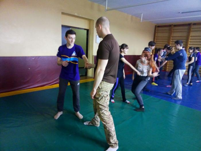 Для учасників проекту «Step Up: школа для активних підлітків» викладачем кафедри спеціальної фізичної підготовки майором поліції Михайлом Калюжним був проведений тренінг з основ самооборони. Учасники набули навичок з першочергових дій у типових ситуаціях нападу злочинця, правильного падіння тощо.