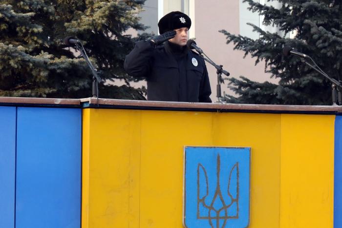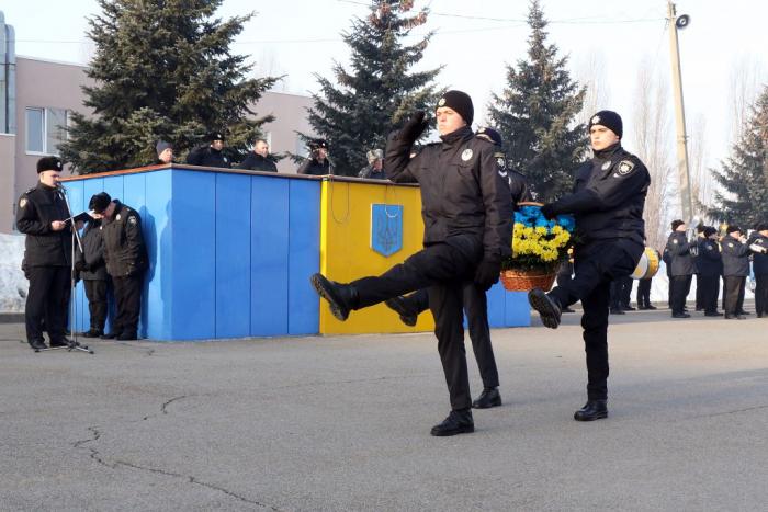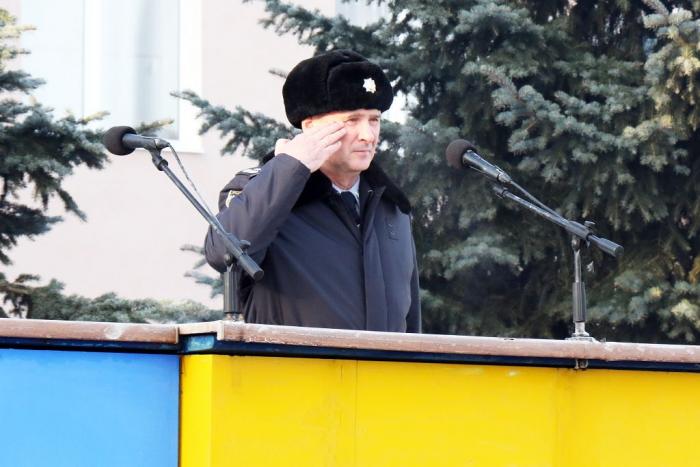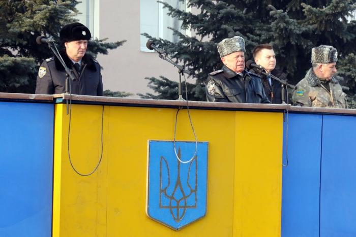 Ректор університету генерал поліції третього рангу Валерій Сокуренко, звертаючись до присутніх, зазначив, що сьогодні українські бійці «захищають рідну землю, свою Батьківщину. Але мужність і героїзм українського народу завжди був, є і буде взірцем готовності українців до самопожертви в ім’я щасливого майбутнього наступних поколінь». Валерій Васильович закликав присутніх «бути гідними нащадками батьків, берегти і захищати безцінний скарб, який ми отримали від них – нашу рідну землю, нашу Україну».