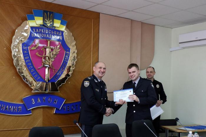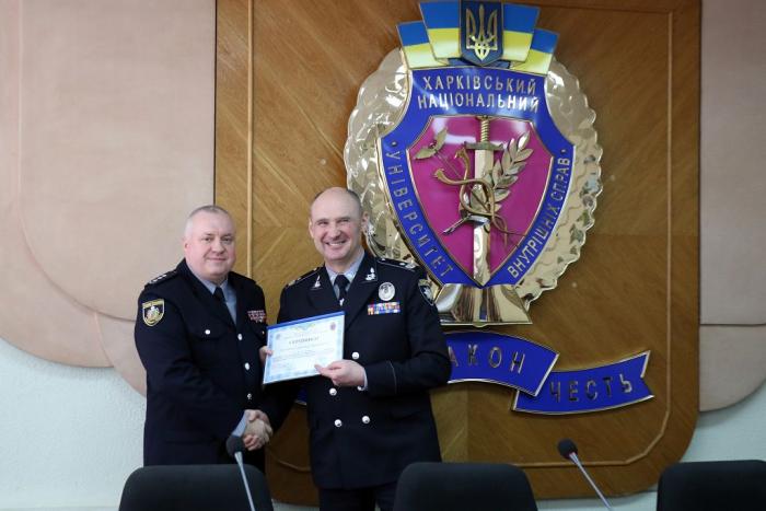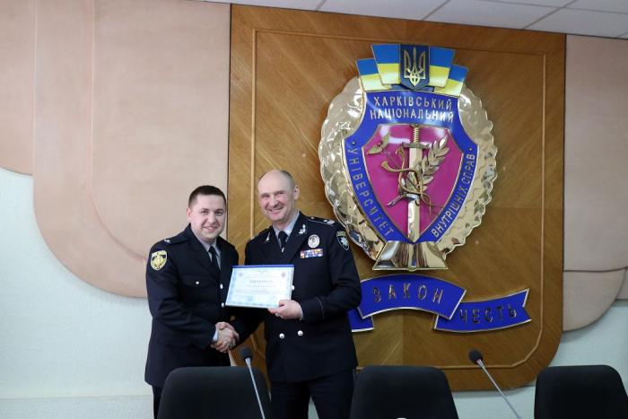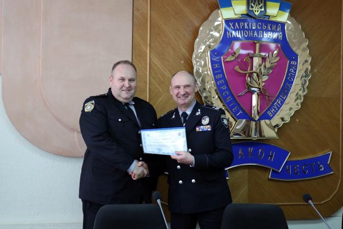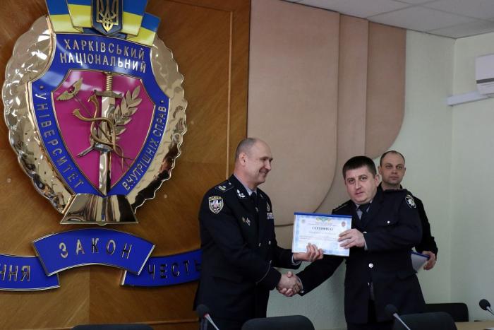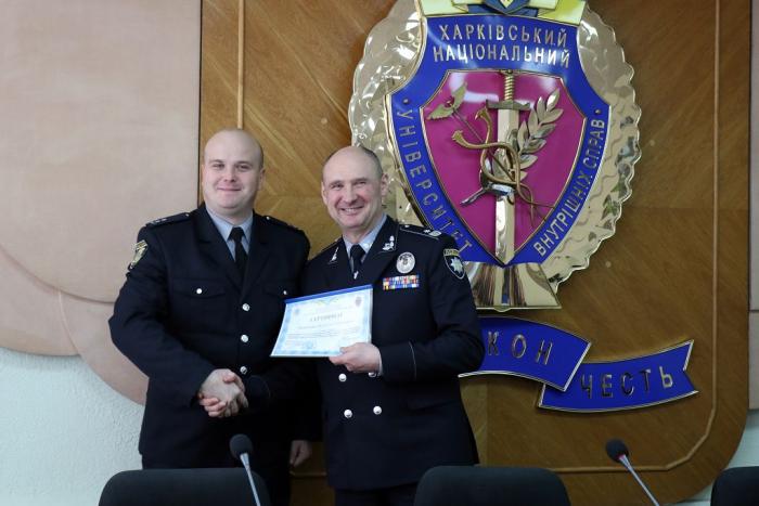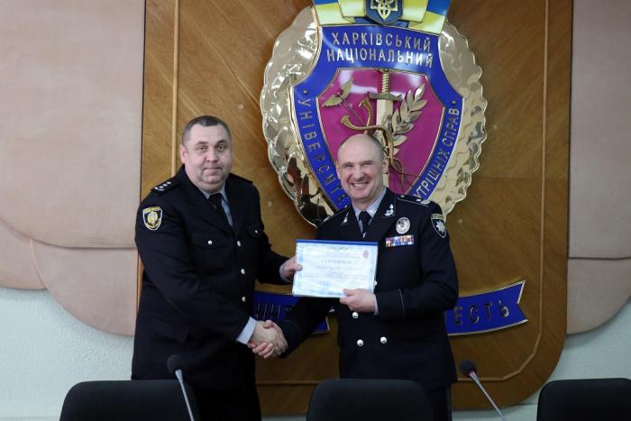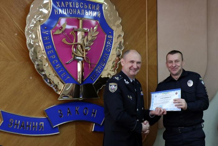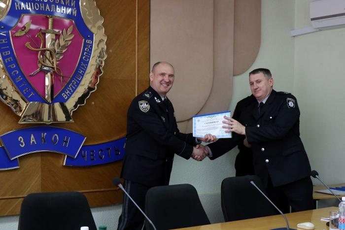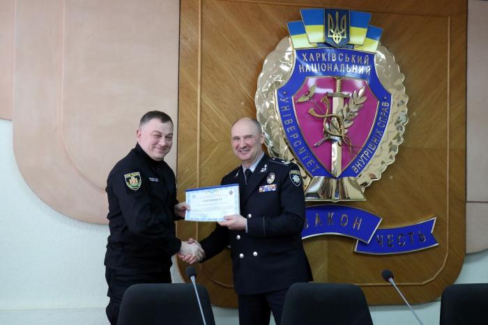 Усі слухачі успішно пройшли тестування та отримали сертифікати про підвищення кваліфікації. У заході взяли участь ректор університету генерал поліції третього рангу Валерій Сокуренко, перший проректор університету підполковник поліції Дмитро Швець, проректор університету Олександр Бакумов. Валерій Васильович привітав слухачів курсів і підкреслив важливість підвищення фахового рівня через отримання нових знань і навичок, спілкування з колегами та обмін досвідом.