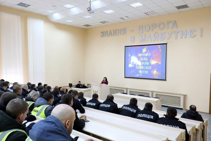 Для курсантів та слухачів Харківського національного університету внутрішніх справ з нагоди відзначення Дня Героїв Небесної Сотні працівниками відділу соціально-гуманітарної роботи було організовано проведення відеолекторію. Лекцію провела працівник Харківської обласної бібліотеки ім. В. Короленка Наталія Удовіченко.