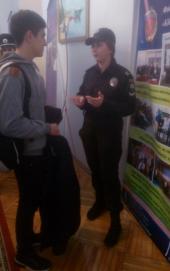 Начальник сектору організації відбору та проведення атестування поліцейських Управління кадрового забезпечення ГУНП в Миколаївській області капітан поліції Олександр Іосіфов розповів школярам, бажаючим вступати до Харківського національного університету внутрішніх справ, про порядок звернення до відділів поліції за місцем проживання.