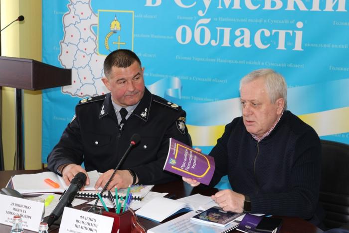 У нараді взяли участь керівники обласних управлінь Державної служби з надзвичайних ситуацій, Державної прикордонної служби, Державної міграційної служби, військової частини Національної гвардії, представники Громадської мережі ОПОРА, начальники структурних і територіальних підрозділів ГУ НП в Сумській області. Учасники наради обговорили виконання спільного плану дій по забезпеченню дотримання законності та правопорядку під час передвиборчої кампанії та виборчого процесу. Володимир Філенко, виокремив два аспекти, на яких правоохоронці повинні зосередити свою роботу по забезпеченню правопорядку та дотриманню законності під час виборчих перегонів. Це – упередження фальсифікації результатів виборів та волевиявлення громадян під час передвиборчої кампанії та забезпечення правопорядку напередодні та в день виборів до того моменту, коли опрацьовані бюлетені будуть доставлені до ЦВК та підраховані.
