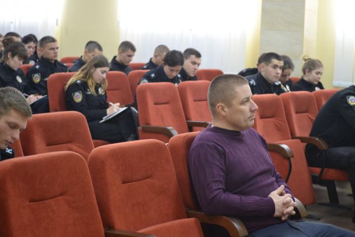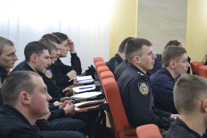 Вадим Губа ознайомив курсантів із процедурою прийняття кандидата на службу до поліції, правилами конкурсного відбору на посади поліцейських та перевірочними заходами, укладенням контрактів із поліцейськими при прийнятті на службу до поліції та ін. Представник Національної поліції на прикладі конкретної особової справи поліцейського розповів курсантам про особливості заведення особової справи та її наповнення, окреслив правила занесення відомостей до трудових книжок поліцейських. Наприкінці заняття Вадим Губа відповів на запитання курсантів щодо проходження служби в поліції.