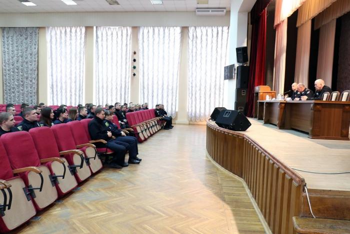 Зі слухачами курсів підвищення кваліфікації зустрілися ректор університету генерал поліції третього рангу Валерій Сокуренко, перший проректор університету Дмитро Швець та директор Інституту післядипломної освіти Євгеній Жеребцов. Вони наголосили на необхідності отримання якісної освіти, дотримання службової дисципліни та правил внутрішнього розпорядку й зазначили, що в університеті створено належні умови для навчання, проживання, самостійної підготовки, занять спортом та відпочинку.