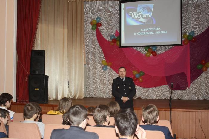 Старший викладач кафедри кібербезпеки факультету № 4 (кіберполіції) Харківського національного університету внутрішніх справ майор поліції Олексій Рвачов разом із курсантами 2 курсу цього ж факультету рядовими поліції Маргаритою Бобонець та Ангеліною Применко провели для старшокласників Харківського фізико-математичного ліцею № 27 просвітницьку лекцію з кібербезпеки в соціальних мережах.