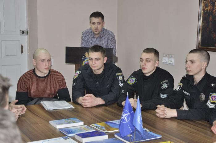 Начальник відділу міжнародних зв’язків ХНУВС підполковник поліції Станіслав Осятинський зосередив увагу присутніх на Програмі «Партнерство заради миру» (ПЗМ), яка є інструментом взаємодії НАТО з країнами-партнерами, та базується на практичному співробітництві й відданості демократичним принципам. Мета Програми – сприяти реформам, підвищити стабільність, зменшити світові загрози безпеці, створити міцні відносини у сфері безпеки між країнами-партнерами та НАТО, а також між самими партнерами.