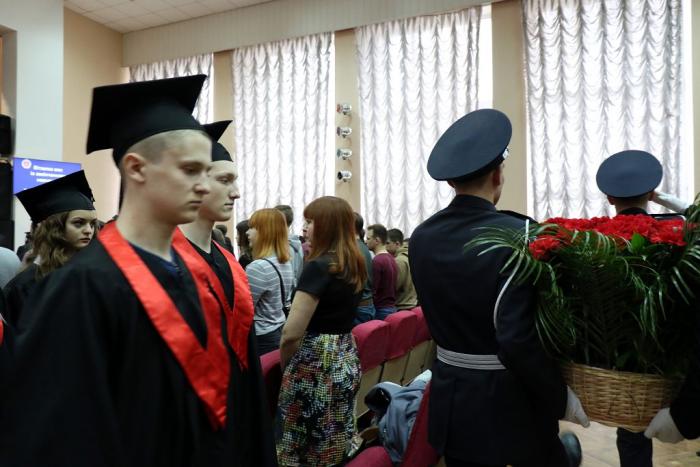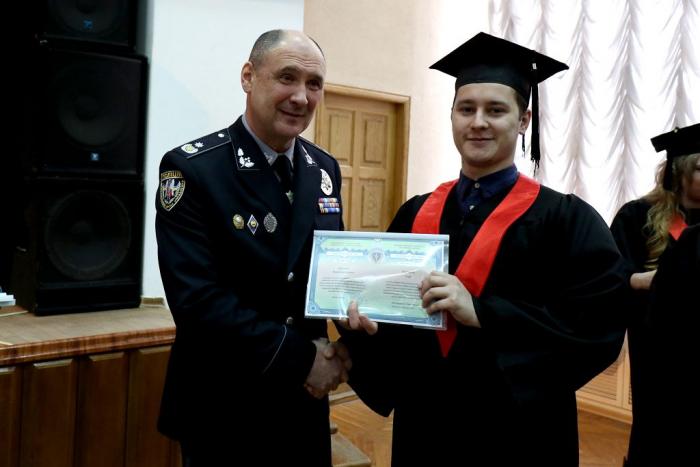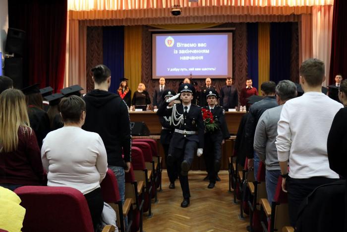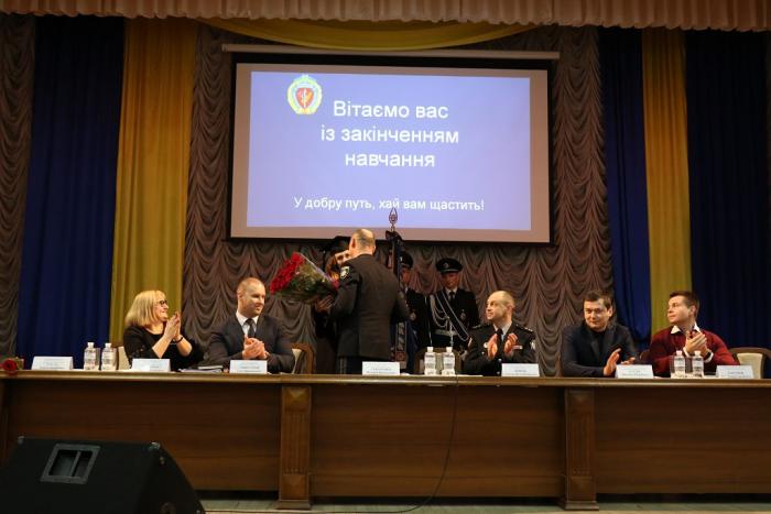 Урочистості розпочалися з вшанування хвилиною мовчання пам’яті загиблих співвітчизників, які у різні роки захищали свободу та незалежність нашої держави, та працівників правоохоронних органів й поклали квіти до пам’ятника. З настановами та словами вітання до випускників звернувся ректор університету Валерій Сокуренко. Він поздоровив молодь з отриманням диплома про вищу освіту, й зазначив, що це вагома подія для всього університету. «Ви пройшли складний шлях випробувань, щоб вступити до магістратури нашого університету, і з честю їх подолали, – зазначив ректор. – Навчаючись в нашому університеті, ви знайшли нових друзів, добрих порадників, вчителів. Ви отримали якісні знання, які допоможуть вам реалізувати себе у професії та житті. Ми заохочуємо молодь до отримання нових знань. Можливо, хтось із вас повернеться до університету, щоб захистити дисертацію, отримати науковий ступінь. Завжди раді бачити вас в стінах нашого навчального закладу. Спрямовуйте свої знання на розбудову нашої держави. Успіхів вам, натхнення, хай вам щастить!».