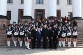 Від імені ректора вишу генерала поліції третього рангу Валерія Сокуренка до присутніх звернувся проректор навчального закладу Анатолій Клочко. Він передав привітання від очільника університету та запросив школярів вступати до Харківського національного університету внутрішніх справ. Анатолій Миколайович розповів, що університет крокує в ногу з часом, постійно удосконалює навчальний процес, впроваджуючи новітні технології, відкриває нові спеціальності для підготовки поліцейських. А навчально-матеріальна база університету є однією з найкращих не тільки серед закладів вищої освіти МВС України. Це – сучасні аудиторії, лекційні зали, навчально-тренувальні полігони, спортивна база, сучасні умови проживання у гуртожитках тощо. Університет чекає на сильну, молоду й талановиту молодь, яка хоче реалізуватися у житті, захищати права та свободи співгромадян.