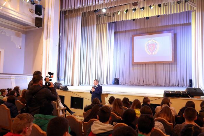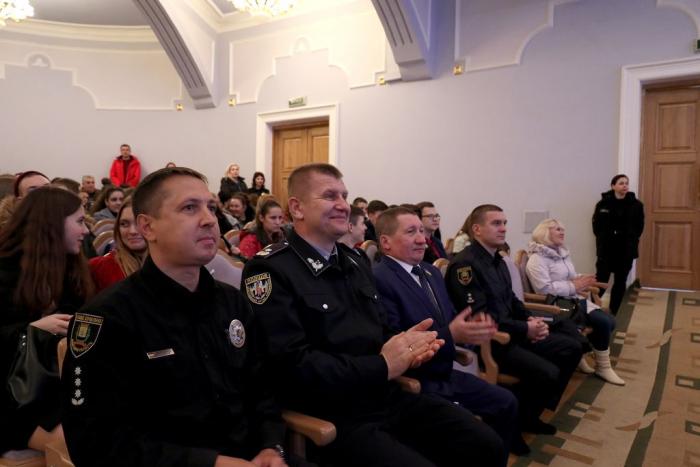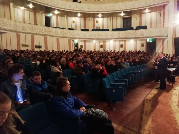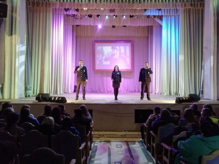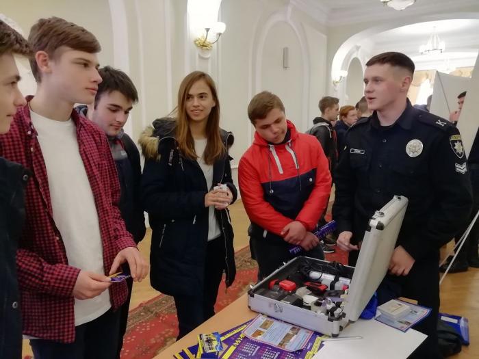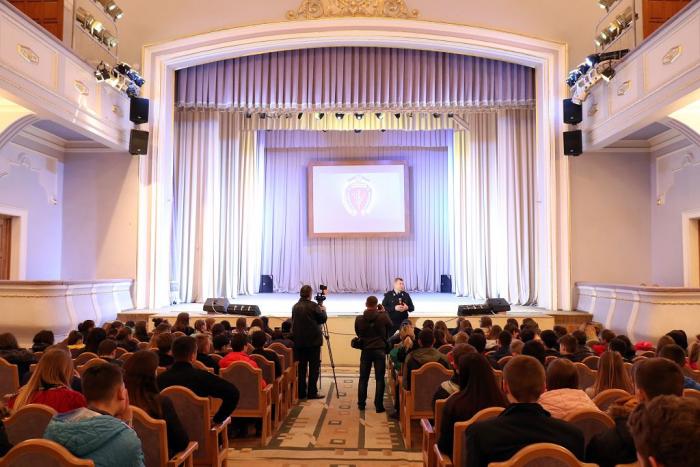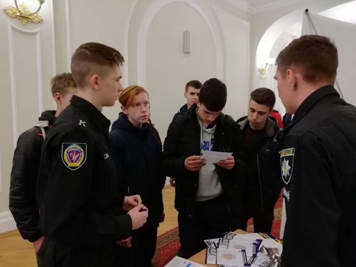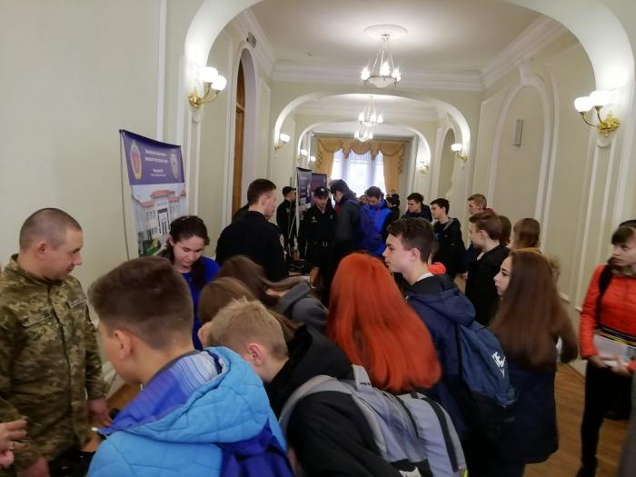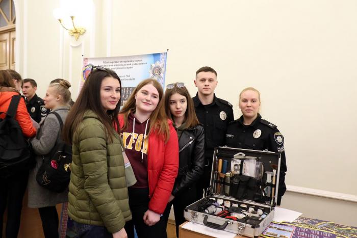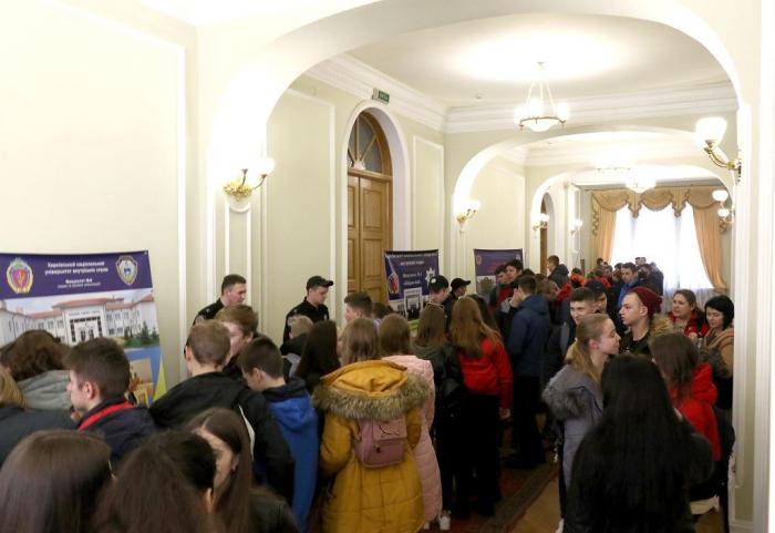 У залі міського Будинку культури, де проходив захід, зібралися близько 500 школярів, щоб познайомитися з університетом. Проректор вишу Анатолій Клочко, вітаючи присутніх від імені ректора університету генерала поліції третього рангу Валерія Сокуренка зазначив, що свою службу Валерій Васильович розпочав на Донецькій землі, а саме в Бахмуті, коли місто ще мало назву Артемівськ. Тож, для когось із присутніх, нинішня зустріч може стати знаковою, відкриє нові обрії та перспективи. Анатолій Миколайович розповів присутнім про університет, про те, чим він живе сьогодні і які плани має на майбутнє, як розбудовує навчальну та матеріальну базу. Для того, щоб стати курсантом вишу потрібно не лише добре вчитися, але й бути фізично загартованим, витривалим, дисциплінованим, вихованим, без шкідливих звичок. «В університеті є всі необхідні умови і для навчання, і для змістовного дозвілля. Працюють численні спортивні секції, гуртки художньої самодіяльності. Тож, навчатися в Харківському національному університеті внутрішніх справ цікаво і престижно. Від того, як ви будете учитися, а згодом і служити – залежатиме і ваша доля, і майбутнє нашої держави», – підкреслив проректор вишу.