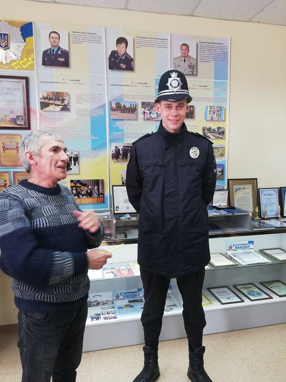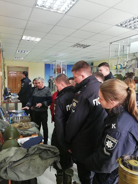 Під час огляду експозиції старший доглядач музею відділу соціально-гуманітарної роботи Сергій Перцов ознайомив відвідувачів з історією становлення правоохоронних органів Харківщини, міліцейської освіти. Курсанти із зацікавленістю намагалися розкрити таємниці злочинів минулого та почули низку захоплюючих історій різних часів із життя правоохоронців України та інших країн.