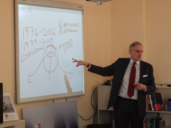 Під час лекцій Девід Шульц розглянув питання щодо державної політики США, проведення виборів та підрахунку голосів, повноважень Президента та Конгресу США. Особливу увагу приділено конституційно-правовій основі президентських розпоряджень та їх використання у внутрішній та зовнішній політиці США.