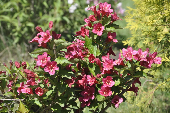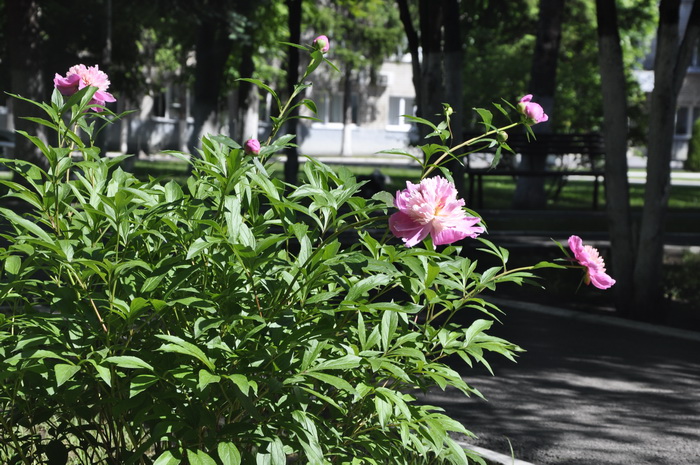 На території Харківського національного університету внутрішніх справ висаджено троянди, півонії, іриси, петунії, чорнобривці, ромашки та багато інших квітів.