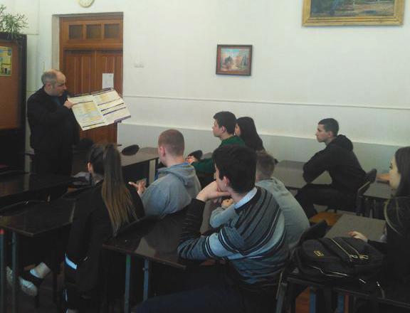 Олександр Іванович надав учням 11 класу вичерпну інформацію про можливості отримання спеціалізованої вищої юридичної та іншої освіти в Харківському національному університеті внутрішніх справ за рахунок бюджетних коштів та на контрактній основі. Він наголосив на перевагах навчання в університеті, серед яких гарантія подальшого працевлаштування курсантів в органах і підрозділах Національної поліції України. Також звернув увагу молоді на можливості особистісного самовдосконалення курсантів і студентів під час навчання у наукових гуртках, гуртках художньої самодіяльності, спортивних секціях тощо.