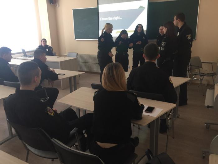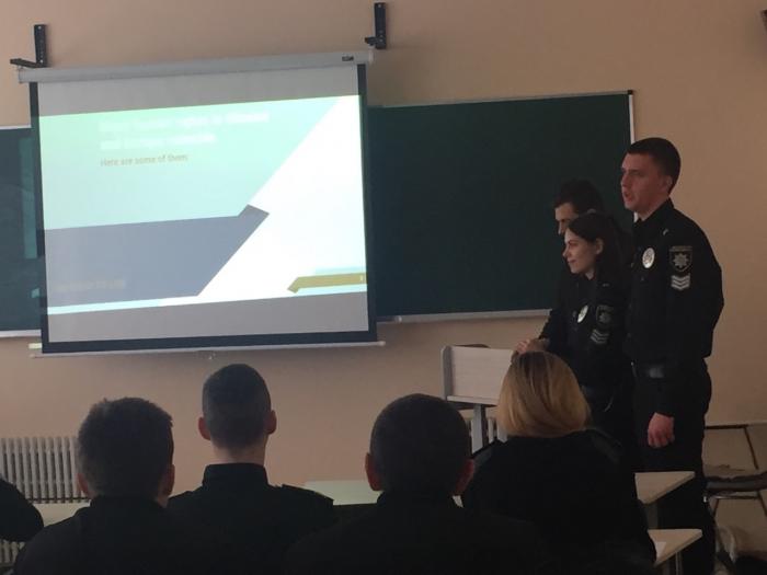 Одним із важливих напрямів діяльності кафедри іноземних мов факультету № 1 є проведення курсантами науково-дослідної роботи. На засіданнях наукового гуртка юнаки та дівчата вдосконалюють свої фахові знання та знання з іноземної мови. Нещодавно для курсантів 2 та 3 курсів факультету № 2 старшими викладачами кафедри іноземних мов Наталією Горбач і Тетяною Кальченко було проведено засідання наукового гуртка, мета якого – підвищення рівня правової культури та правової свідомості громадянина. Учасники гуртка визначили, які саме права людини найбільше потребують захисту, ознайомилися з презентацією, присвяченою правам і свободам громадянина та зіграли у рольову гру про порушення прав людини.