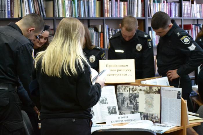 Курсанти 2 та 3 курсів факультету № 2 Харківського національного університету внутрішніх справ ознайомилися з книжковою експозицією, присвяченою 100-річному ювілею карного розшуку України. Ознайомчу екскурсію провела провідний бібліотекар інформаційно-бібліографічного відділу загальної бібліотеки університету Світлана Головаш. Виставку також відвідали заступник декана факультету № 2 Сергій Гіренко та професори кафедри оперативно-розшукової діяльності та розкриття злочинів Микола Стащак та Андрій Ханькевич.