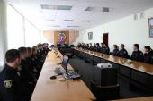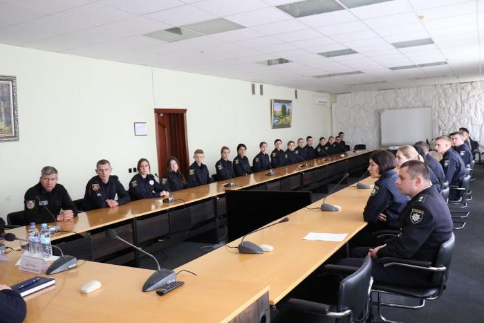 З поліцейськими зустрілися перший проректор університету підполковник поліції Дмитро Швець та проректор університету Олександр Бакумов. Вони націлили слухачів на здобуття якісної освіти, підкреслили важливість дотримання службової дисципліни та правил внутрішнього розпорядку й зазначили, що в університеті створено необхідні умови для навчання, самостійної підготовки, занять спортом та відпочинку.
