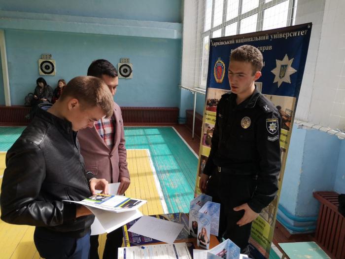 Представники факультету № 4 Харківського національного університету внутрішніх справ доцент кафедри цивільно-правових дисциплін Олександр Шишка та курсант Антон Волков взяли участь у профорієнтаційному заході «Професія твоєї мрії», який проходив за підтримки Харківського обласного центру зайнятості у селищі міського типу Шевченкове Харківської області.