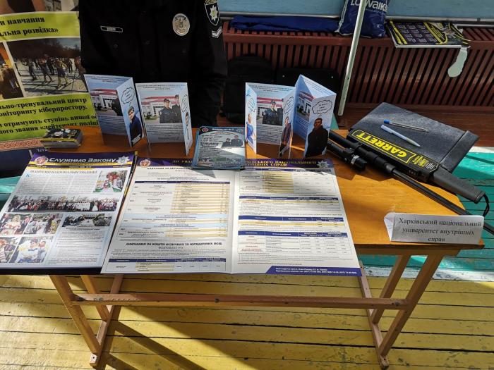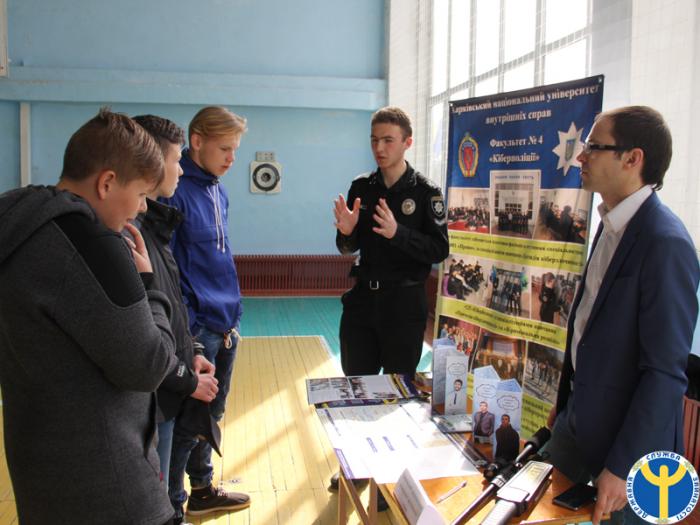 У приміщенні ліцею Шевченківської районної ради зібралися близько 240 учнів 8 –11 класів загальноосвітньої школи № 1 та ліцею Шевченківської районної ради. Представники університету розповіли молоді про спеціальності та умови вступу до Харківського національного університету внутрішніх справ, надали контактну інформацію Головного управління Національної поліції в Харківській області для звернення щодо оформлення особових справ кандидатів на навчання, ознайомили з перспективами та перевагами працевлаштування, з особливостями організації освітнього процесу, дозвілля, побутових умов.