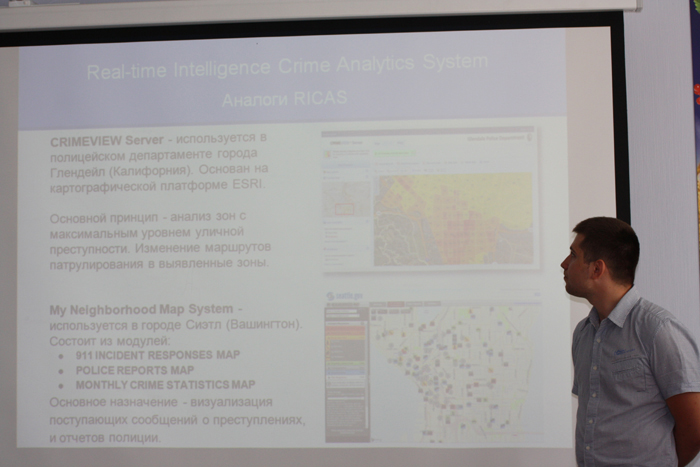 Найбільшу зацікавленість в учасників семінару викликав цикл доповідей представників Управління інформаційно-аналітичного забезпечення ГУМВС України в Харківській області, які презентували робочий проект інтелектуальної системи кримінального аналізу в реальному часі «RICAS», яка на теперішній час розробляється працівниками управління.
