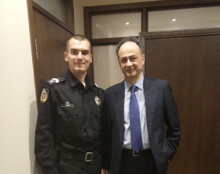Відбулася неформальна зустріч представників громадянського суспільства з послом ЄС в Україні, Головою Представництва ЄС в Україні, Хюґом Мінґареллі в рамках його офіційного візиту до м. Харкова, а також з координаторами секторів Європейського Союзу в Україні та представниками Європейського банку реконструкції та розвитку. У зустрічі взяв участь і курсант 3 курсу факультету № 1 Віталій Найда, який представив гостям власні соціальні проекти та пропозиції щодо поглиблення співпраці між громадським сектором та Національною поліцією.