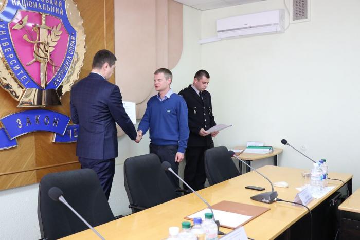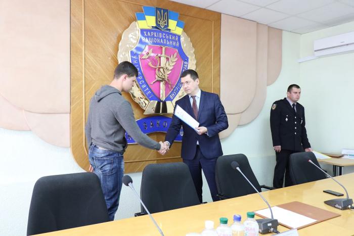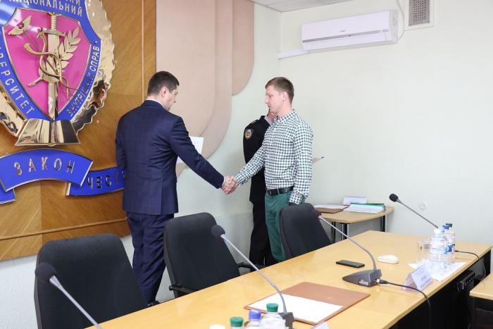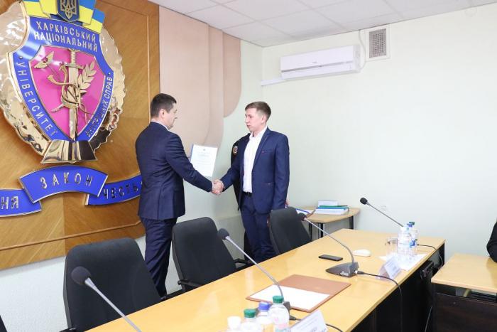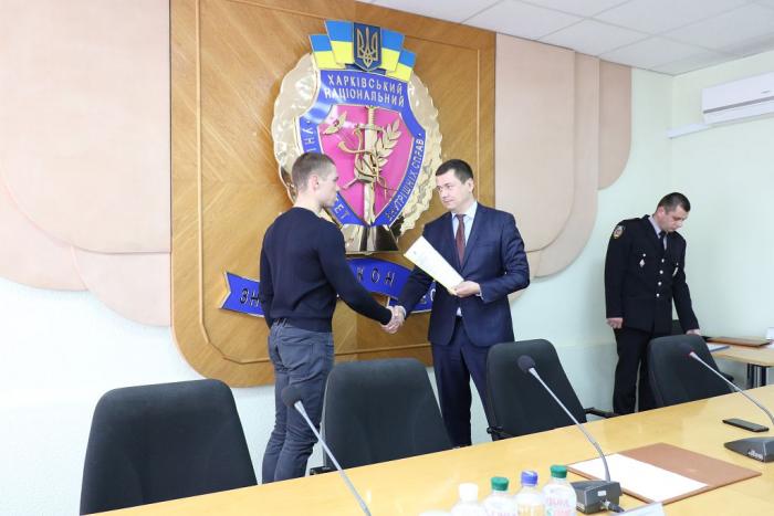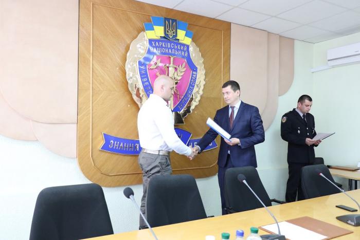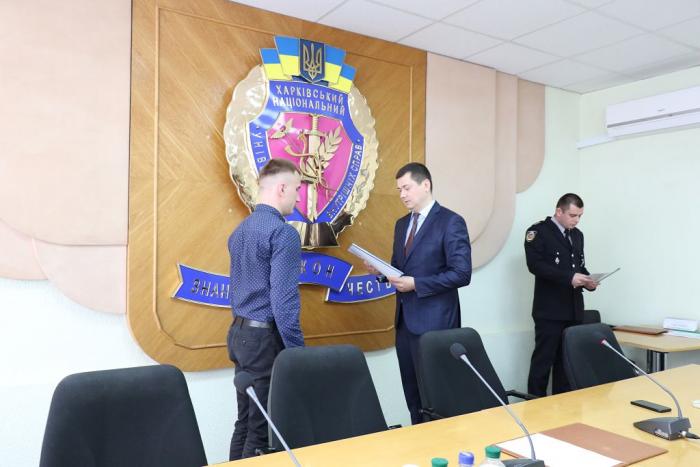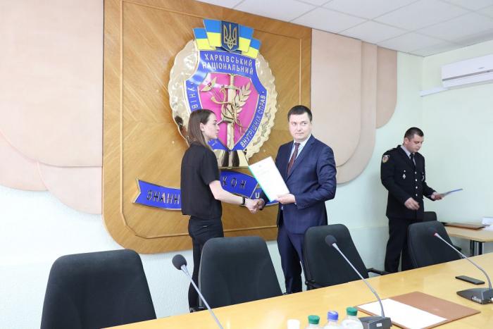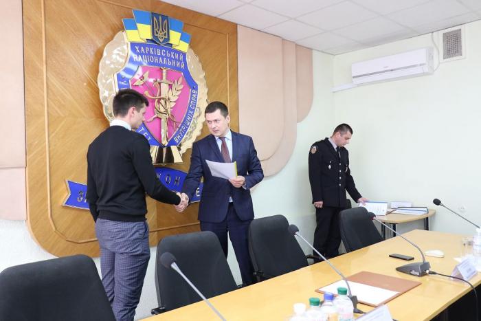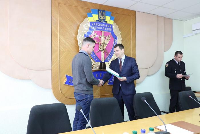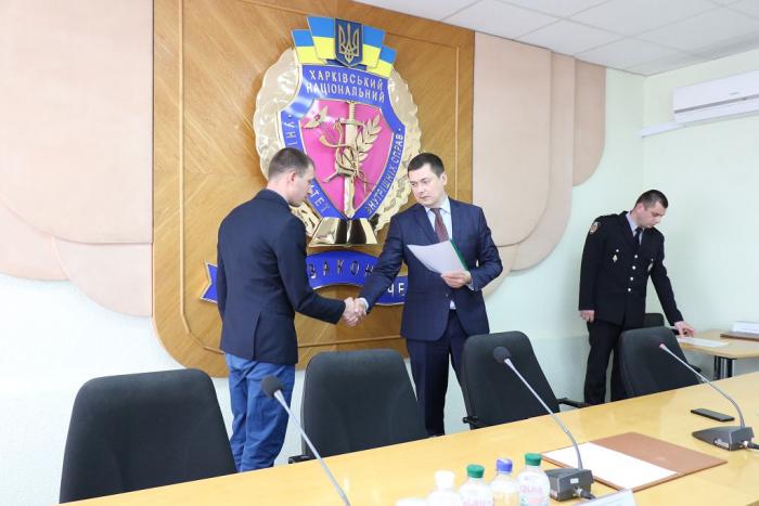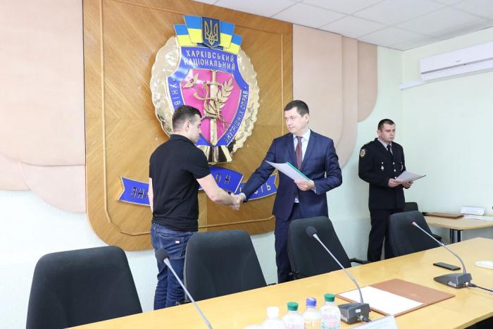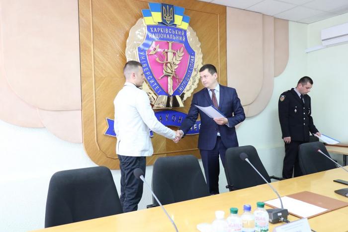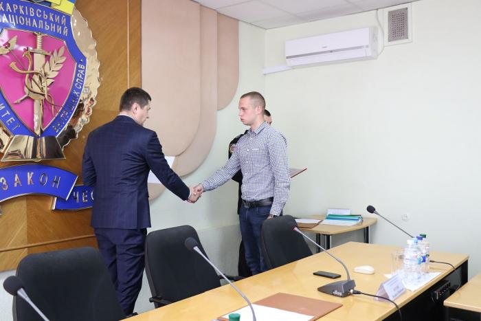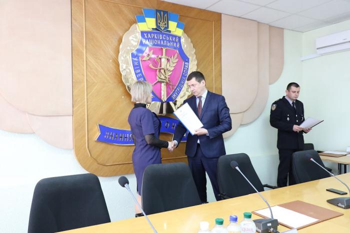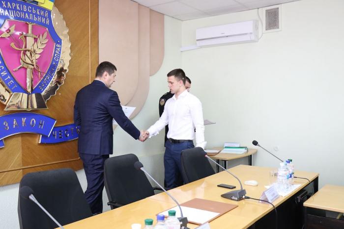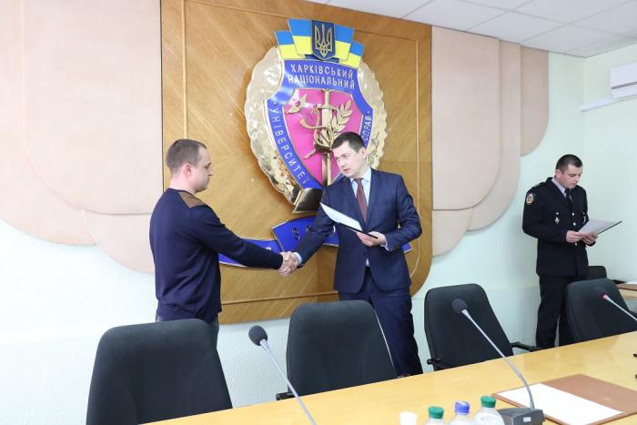 В Інституті післядипломної освіти ХНУВС відбувся випуск 35 слухачів курсів первинної професійної підготовки поліцейських, які навчалися за програмою кримінальної поліції. Довідки про закінчення курсів поліцейським вручив проректор університету доктор юридичних наук, професор Михайло Бурдін.