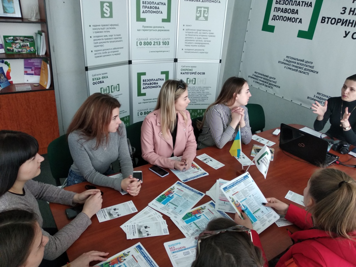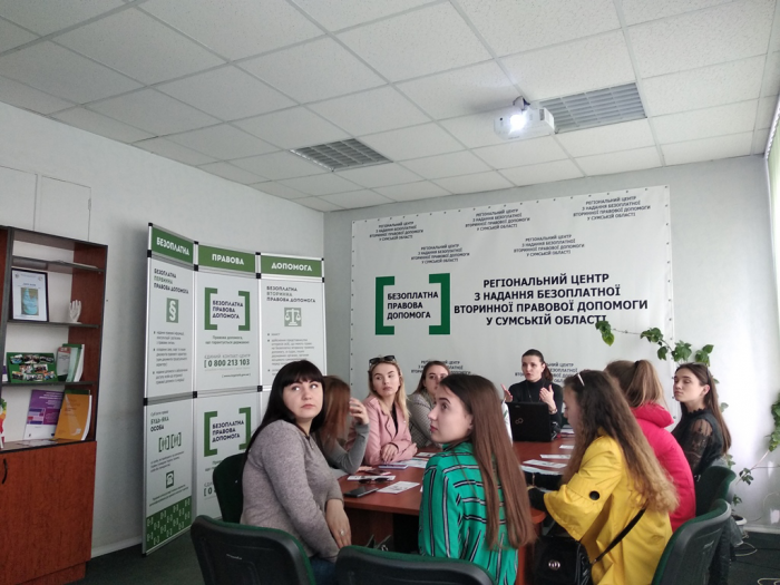 Студенти отримали інформаційні матеріали про систему безоплатної правової допомоги та про правопросвітницький проект «Я МАЮ ПРАВО!». Було досягнуто домовленості про подальше знайомство студентів-юристів з діяльністю Регіонального, місцевого центрів та бюро правової допомоги на Сумщині.
