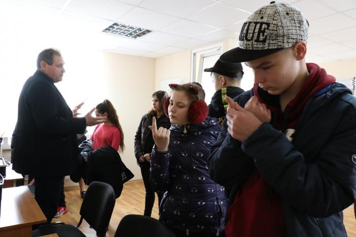 Зі школярами поспілкувався перший ректор університету (1992–2003, 2010–2012 рр.), академік Національної академії правових наук України, Заслужений юрист України, доктор юридичних наук, професор Олександр Маркович Бандурка.