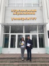 Відбулася підсумкова науково-практична конференція ІІ туру Всеукраїнського конкурсу студентських наукових робіт у галузі «Гендерні дослідження», яка пройшла на базі Херсонського державного університету. У конференції взяли участь і представники Харківського національного університету внутрішніх справ – курсант 4 курсу факультету № 1 Вікторія Цебинога та її науковий керівник провідний науковий співробітник відділу організації наукової роботи, кандидат юридичних наук Володимир Чумак.