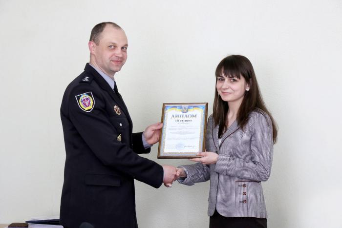Дипломом ІІІ ступеня відзначено переможця Всеукраїнського конкурсу студентських наукових робіт «Теорія та історія держави і права, історія політичних і правових учень, філософія права» Ушакову Маргариту В’ячеславівну – курсанта 1 курсу факультету № 4.