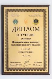 У номінації «Навчальні посібники» Дипломом І ступеня відзначено навчальний посібник «Сучасні проблеми цивільного права та процесу», підготовлений С.О. Сліпченком, О.В. Синєгубовим, В.А. Кройтором та іншими за редакцією Ю.М. Жорнокуя та Л.В. Красицької. Нагороду отримав Жорнокуй Юрій Михайлович – завідувач кафедри цивільного права та процесу факультету № 6.