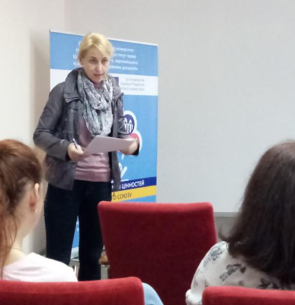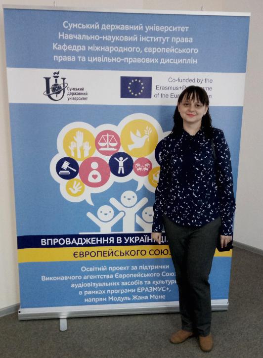 Доцент кафедри юридичних дисциплін Сумської філії Харківського національного університету внутрішніх справ Вікторія Панкратова взяла участь у тренінгу «Цінності Європейського Союзу: інструментарій вивчення та поширення в Україні. Принцип рівності». Його мета – ознайомлення вчителів загальноосвітніх та спеціалізованих навчальних закладів, викладачів закладів вищої освіти та громадськості з інноваційними методиками навчання дітей та молоді європейським цінностям, а також поширення цінностей ЄС у суспільстві та формування переконання щодо необхідності їх втілення в українську практику.