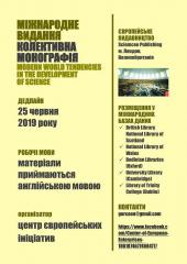 Прийом заявок та статей для публікації в монографії – до 25 червня 2019 року.