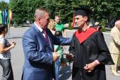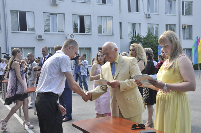 Привітав випускників із отриманням диплому і радник ректора університету, президент Кримінологічної асоціації України, академік Національної академії правових наук України, доктор юридичних наук, генерал-полковник міліції Олександр Бандурка. Він зазначив, що девіз університету «Знання. Закон. Честь». «Знання треба поповнювати все життя, законом керуватися на кожному кроці, а честь берегти змолоду. Ви отримали вищу освіту, але на цьому процес навчання не зупиняється, – продовжив Олександр Бандурка. – Бажаю, щоб кожний із вас досяг тих висот, про які мріє».