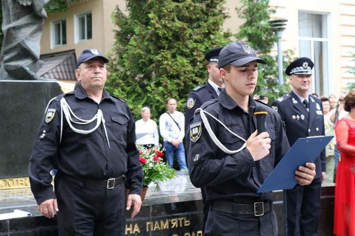 Перш за все присутні вшанували правоохоронців, які загинули під час виконання службових обов’язків, а також пам'ять тих, хто захищав східні рубежі нашої держави від агресора. Серед них був і випускник ліцею Антон Безверхній, з яким нещодавно попрощалися харків’яни. Ліцеїсти поклали квіти до Меморіалу слави загиблим працівникам поліції. Кирил Степанов від імені всіх випускників ліцею пообіцяв, що всі вони стануть гідними синами, достойними пам’яті загиблих працівників поліції. «Попереду – доросле життя з випробуваннями та наполегливою щоденною працею. Ми – надія своїх рідних, майбутнє України. І яким воно буде – залежить від нас», – зазначив юнак.