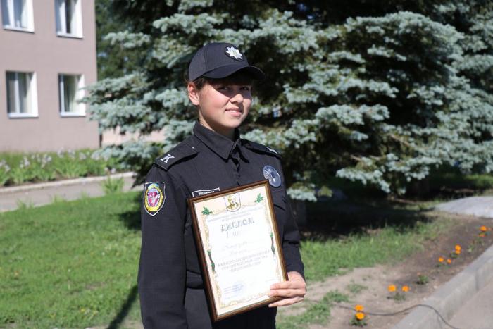 Під час ранкового шикування Диплом та нагороду конкурсу переможниці вручив перший проректор університету підполковник поліції Сергій Бортник.
